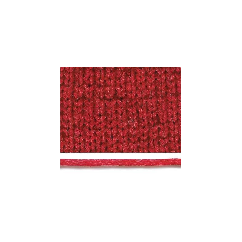 Ленточная нить с добавлением люрекса. Ширина нити 3 мм.Рекомендуемый диаметр спиц для пряжи 7.0мм. На вязаном изделии размером 10х10 см получается 20 рядов по 16 петель.